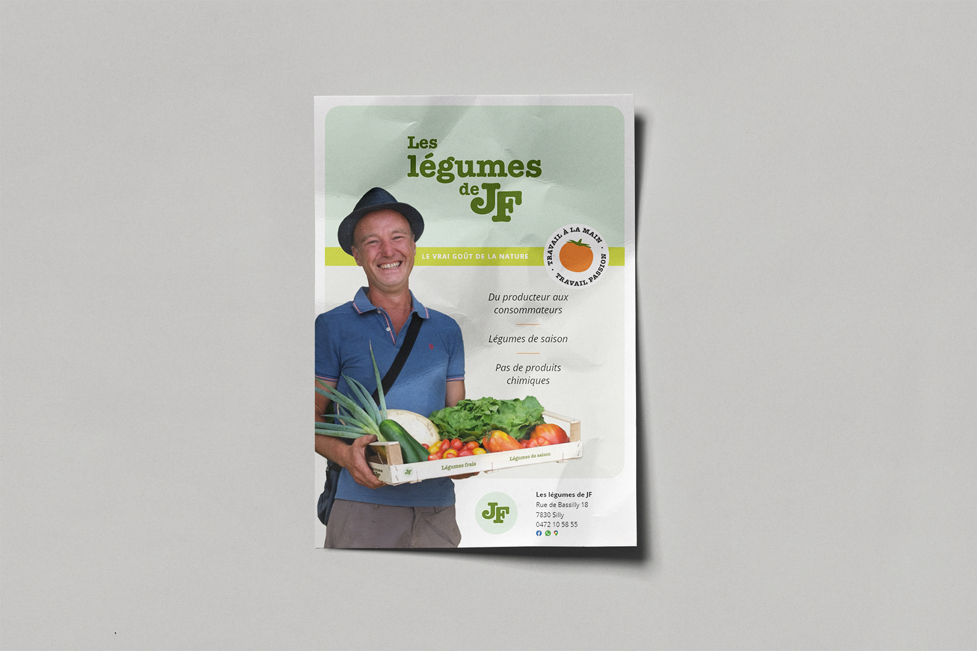 I gave Jean Francoise the choice between three different design concepts, and he chose the direction Healthy, natural & classic. The inspiration for this design comes from the garden, vegetables & gardening tools.